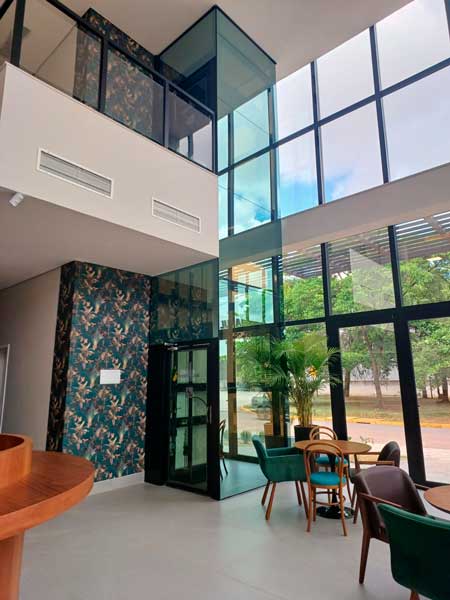 Projetada para oferecer mobilidade segura e confortável a cadeirantes (inclusive com acompanhante), idosos e pessoas com mobilidade reduzida, essa solução se destaca pelo seu design moderno, instalação simplificada e funcionamento silencioso. Além disso, a Plataforma Cabinada Vertline possui uma cabina espaçosa com 2 metros de altura e iluminação em LED.